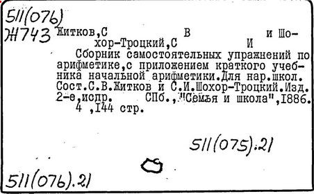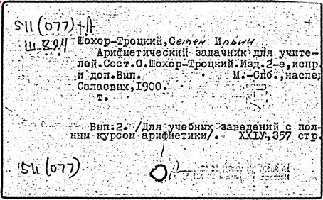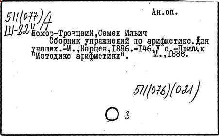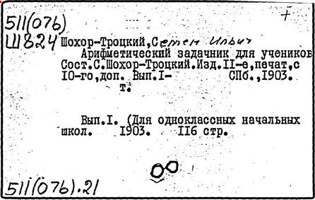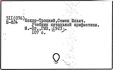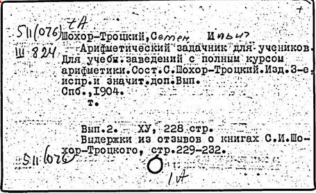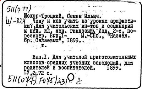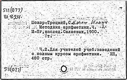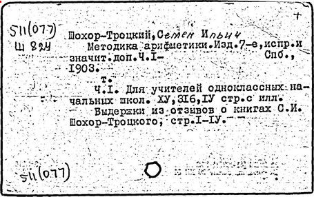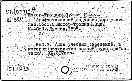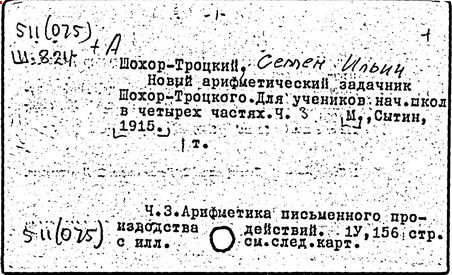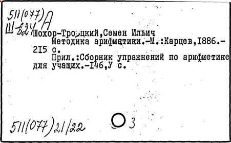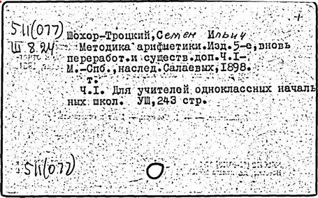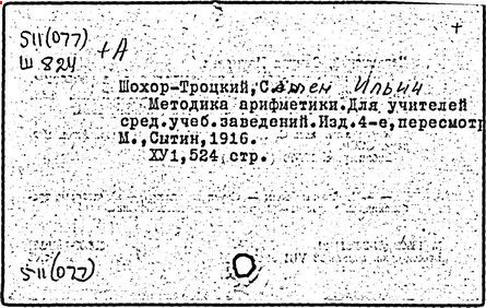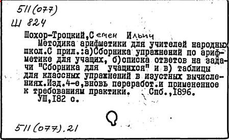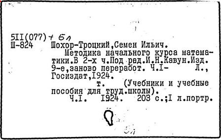 Литература: Пчелко А. С., С. И. Шохор-Троцкий, в его кн.: Хрестоматия по методике начальной арифметики, М., 1940; Скаткин Л. Н., С. И. Шохор-Троцкий (К 120-летию со дня рождения), «Математика в школе», 1973, № 1.