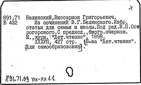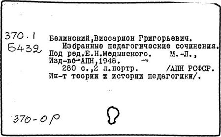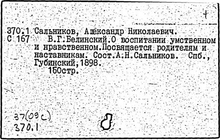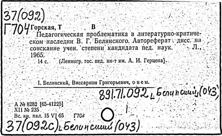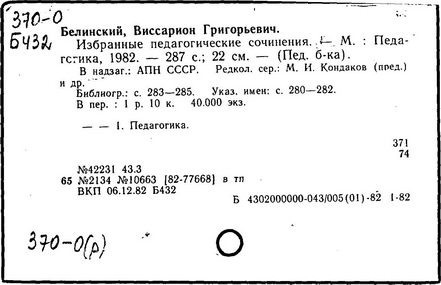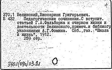 Литература: Теплов Б. М., Психологические взгляды В. Г. Белинского, Советская педагогика, 1948, № 5; Познанский Н. Ф., В. Г. Белинский о воспитании, М., 1949; Монжале Е. С., Педагогические идеи В. Г. Белинского, Л., 1955; Петрова Е. Н., В. Г. Белинский о преподавании русского языка в школе, М., 1961; Смирнов В. 3., Крупнейший русский педагог первой половины XIX в., Советская педагогика, 1961, № 6, с. 32-43; Гозун Л. А., Эстетический кодекс Белинского, Вестник МГУ, сер. 9. Филология, 1981, № 4, с. 10 - 16.