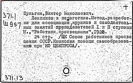 Идея " педагогизации среды " В.Н. Шульгина, [1894-1965 гг.] [Текст]/