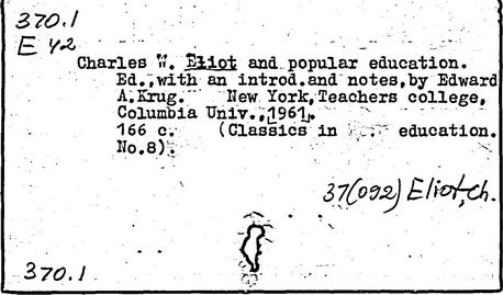 американский педагог. Образование получил в Бостонской «латинской школе» и Гарвардском колледже, который окончил в 1853 г. В 1854-1858 гг. – тьютор по математике в Гарварде. В 1858-1863 гг. преподавал математику и химию в Гарвардском университете. В 1869-1909 гг. президент Гарвардского университета (в1909-1926 – почетный президент). Находясь на посту президента в течение 40 лет, Элиот реорганизовал это учебное заведение в одно из крупнейших и лучших учебных заведений Америки. Элиот настаивал на необходимости повышения уровня образования в средней школе. Он шел по пути дальнейшего развития так называемого элективного принципа, сущность которого заключается в том, что выбор предметов обучения осуществляется самими учащимися; этот принцип был введен в большинстве американских колледжей.