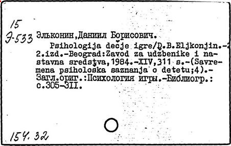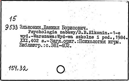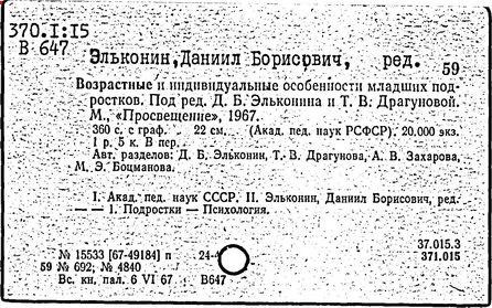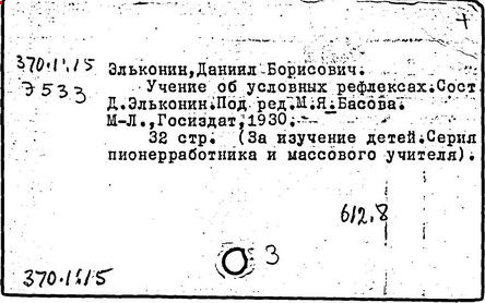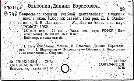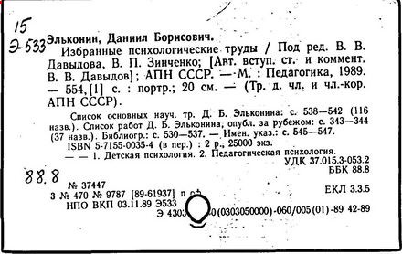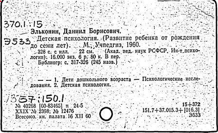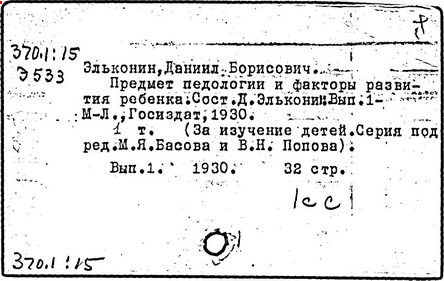 Литература: Венгер А. Л., Слободчиков В. И., Эльконин Б. Д., Проблемы детской психологии и научное творчество Д. Б . Эльконина, Вопросы психологии, 1988, № 3.