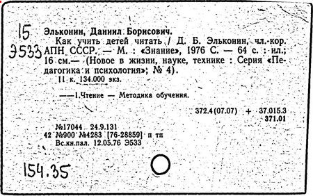 Эльконин разработал эффективный метод обучения детей чтению на основе звукового анализа слов, составил экспериментальные буквари (1961 г.; ч. 1-2, 1969-1972 гг.).