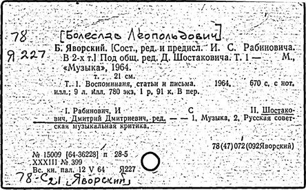 Литература: Б. Яворский. Статьи, воспоминания, переписка, т. l , M, 1972; Морозова С., Из истории массового музыкального воспитания. Б. Л. Яворский. "Музыкальное воспитание в школе", 1977, вып. 12; Морозова С., Далекое-близкое. (Б. Л. Яворский о музыкальном воспитании детей), там же, 1985, вып. 16.