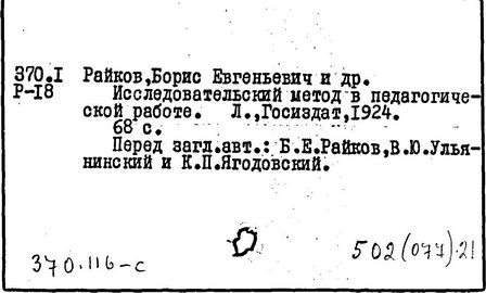 Литература: Райков Б. Е., Пути и методы натуралистического просвещения, М., 1960.