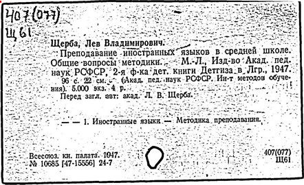 Щерба - основатель крупной лингвистической школы, один из основоположников теории фонем, методист русского и иностранных языков. Разработал принципы обучения иностранным языкам в университетах и лингвистических институтах, на курсах для взрослых, в средних общеобразовательных школах, создал теоретические основы общей методики иностранных языков. Отмечал невозможность создания универсальных методов обучения, стремился применять средства филологии для общего развития и воспитания учащихся, не допускать, по его словам, "дефилологизации" школы. Один из авторов первого издания Академической грамматики русского языка, член Орфографической комиссии, составлявшей "Свод правил русской орфографии и пунктуации" (опубликовано в 1956 г.). Участвовал в составлении и редактировании учебных планов, программ и учебников по русскому языку для средней школы.
