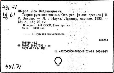 Теория русского письма [Текст]/ Л. В. Щерба;