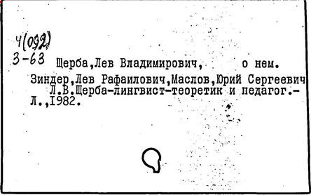 Литература: Памяти академика Л. В. Щербы, [М.], 1951; ЗиндерЛ.Р., М атусевич М. И., Л. В. Щерба. Основные вехи его жизни и научного творчества, в книге: Щерба Л. В., Языковая система и речевая деятельность, Л, 1974 (библ.).