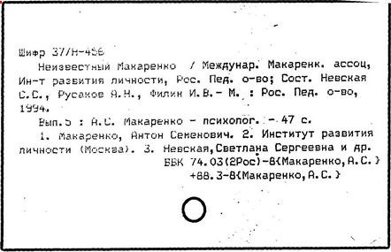 - М.: Витязь, 1994. -(Неизвестный Макаренко)