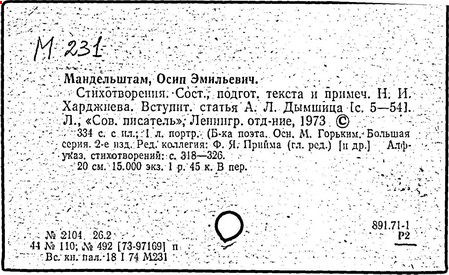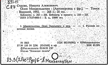 Сост. Н.А. Струве по указаниям Н.Я. Мандельштам. -