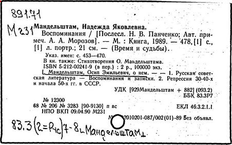 Воспоминания/ Н. Я. Мандельштам. -4-е изд.