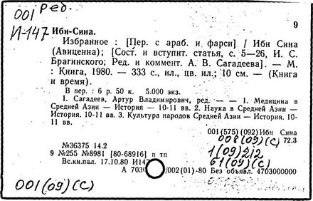 Сочинения: Канон врачебной науки, кн. 1-5, Таш., 1954-60; Даниш-намэ. Книга знания, (Душанбе), 1957.