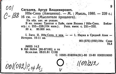Литература: Ибн-Сина. Мат-лы науч. сессии АН Узбекской ССР, посвященной 1000-летнему юбилею Ибн-Сины, Таш., 1953; Семенов А. A., Абу Али ибн-Сина (Авиценна), (Душанбе), 1953; Невский В. A., Великий тадж. врач Абуали ибн-Сино (Авиценна). Библиография, (Душанбе), 1957; Avicenna: scientist and philosopher. A millenary symposium, L., 1952; Naficy S. (Nafisi), Avicenna. His lite, works, thought and time, Teheran, 1954; Avicenna commemoration volume, Calcutta, 1956.