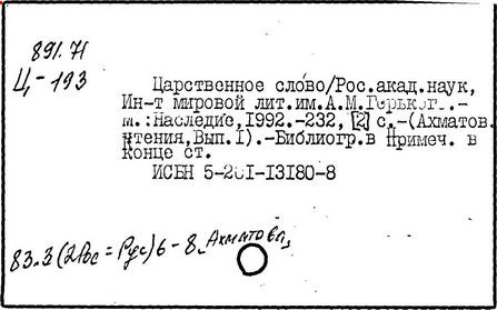 -267, [2] с.: ил. -(Ахматовские чтения; Вып.3). -