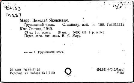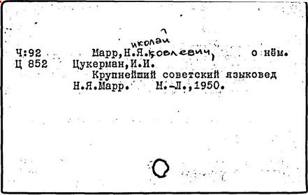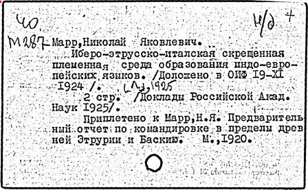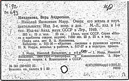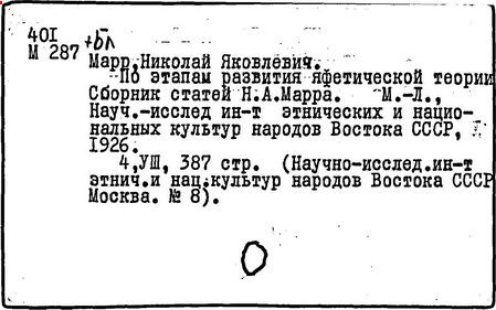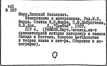Литература: Миханкова В. А. Николай Яковлевич Марр. Очерк его жизни и научной деятельности. 3 изд. М.; Л., 1949; Абаев В. И. Н. Я. Марр (1864—1934). К 25-летию со дня смерти // Вопросы языкознания. – 1960. – № 1; Тройский И. М. Сравнительно-исторические исследования // Теоретические проблемы советского языкознания. М., 1968; Гухман М. М. Типологические исследования // Теоретические проблемы советского языкознания. М., 1968.