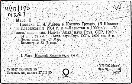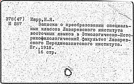 российский востоковед и лингвист, академик Академии наук СССР (1912 г.). Родился в Кутаиси. Окончил Петербургский университет (1890 г.). Основной вклад в науку внёс в области армяно-грузинской филологии; изучил и опубликовал ряд древнейших памятников армянской и грузинской литератур; основал серию "Тексты и разыскания по армяно-грузинской филологии" (выпуски 1 – 13, 1900 – 1913 гг.). Успешно занимался также изучением кавказских языков (картвельских, абхазского и других), историей, археологией и этнографией Кавказа. В связи с исследованием сравнительной грамматики картвельских языков Марр обратился к поискам их родства с другими языками мира, выдвинув ряд гипотез, недостаточно подкрепленных конкретным языковым материалом (о родстве картвельских языков с семитскими, баскским и другими). Когда гипотеза Марра о родстве языков пришла в противоречие с данными научного языкознания, Марр попытался ликвидировать это противоречие, объявив всё "традиционное", "индоевропейское" языкознание устаревшим и не совместимым с марксизмом и построив совершенно новую лингвистическую теорию ("яфетическая теория", "новое учение о языке"). Построения Марра этого времени не поддаются объективной проверке при помощи строгой научной методики и в ряде случаев опровергаются языковым материалом. С общелингвистической точки зрения взгляды Марра имеют много общего со взглядами австрийского лингвиста Х. Шухардта и некоторыми идеями французской социологической школы.