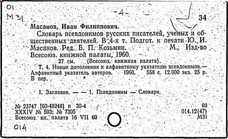 российский библиограф. Родился в с. Новом Владимирской губ.. Окончив только сельскую школу, Масанов прошёл трудовой путь от каменщика до учёного-библиографа, неустанно пополняя знания самообразованием. В своей библиографической деятельности Масанов обращался к краеведению («Библиография Владимирской губернии», 1905 г.), истории русских периодических изданий («Русские сатиро-юмористические журналы», т. 1‒3, 1910‒1913 гг., и др.), истории русской литературы («Библиография сочинений А. П. Чехова», 1906 г.; «Чеховиана», 1929). Основной труд Масанова, которому он посвятил всю жизнь, ‒ «Словарь псевдонимов русских писателей, учёных и общественных деятелей» (т. 1‒4, 1956‒1960 гг.), охватывающий свыше 80 тысяч псевдонимов. Словарь был дополнен и подготовлен к печати сыном Масанова ‒ Ю. И. Масановым.