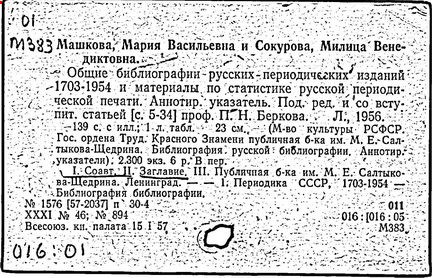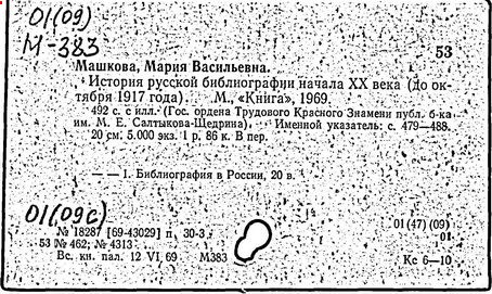 Источник: Библиотечная энциклопедия / Гл. ред. Ю. А. Гриханов; Рос. гос. б-ка. – М.: Пашков дом, 2007. – С. 612.