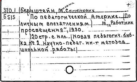 российский педагог и психолог. Окончил физико-математический факультет Московского государственного университета и Высшие научно-педагогические курсы. С 1930 г. – профессор, заведующий методологическим бюро Академии коммунистического воспитания им. Н. К. Крупской и заведующий отделом в центральной лаборатории по профориентации Института труда. С 1935 г. Бернштейн заведовал кафедрой психологии Томского педагогического института. В 1943 – 1948 гг. – старший научный сотрудник Научно-исследовательского института теории и истории педагогики Академии педагогических наук РСФСР. Основное направление научной деятельности Бернштейна – исследование и критический анализ зарубежной педагогики и педагогической психологии. Им написаны книги и статьи по проблемам становления советской школы: «Наша современность и дети» (1926 г.), «Домашний труд детей и школа» (1927 г.) и др. С 1950 г. Бернштейн занимался литературной работой. В последние годы исследовал проблемы психологии научного творчества, социальной и дифференцированной психологии, опубликовал монографии: «Психология научного творчества» (1965 г.), «Индивидуальный характер усвоения и индивидуализация обучения» (1975 г.).