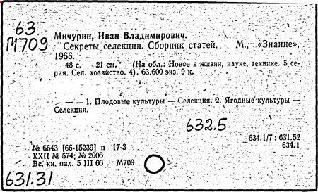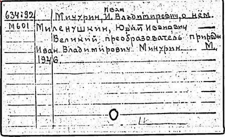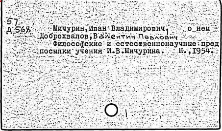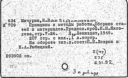 При царизме Мичурин не встретил поддержки у представителей "казенной науки". Он неоднократно предлагал департаменту земледелия взять в ведение государства его небольшой опытный участок и указывал на необходимость организации хотя бы одного на всю Россию государственного учреждения, где могли бы продолжаться гибридизационные работы. Все его попытки вызвать интерес к своим опытам наталкивались на невежество и безразличие чиновников, а реакционные представители ученого мира, которых Мичурин называл "кастовыми жрецами болтологии", открыто презирали его. Но, несмотря на это, Мичурин, будучи горячим патриотом, наотрез отказался от настойчивых предложений (1911, 1913) представителя департамента земледелия США продать свои коллекции.