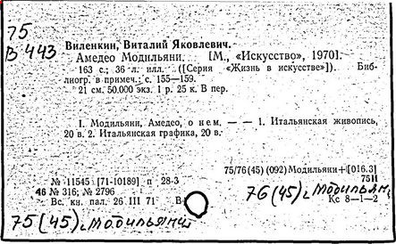 Литература: Виленкин В. В. Амедео Модильяни. М., 1970; [Valsecchi М.]. Amedeo Modigliani. Milan, 1955; Sichel P. Modigliani. A biography of Amedeo Modigliani. New York, 1967; I dipinti di Modigliani. Milan, [1970].