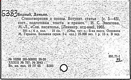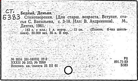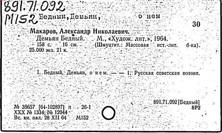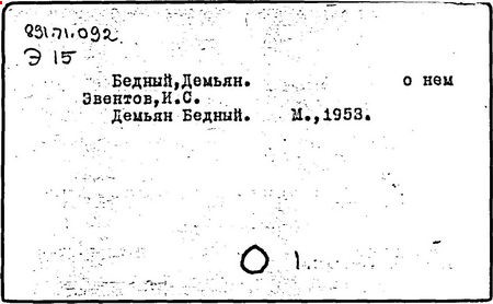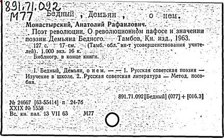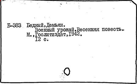 В годы Отечественной войны Демьян Бедный создал множество поэтических текстов к плакатам, написал новые стихотворные повести, легенды, поэмы ("Русские девушки", 1942 г., "Месть", 1943 г., "Хозяин", 1945 г.).