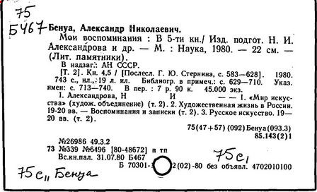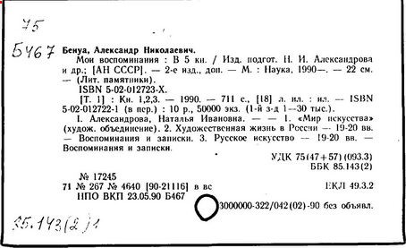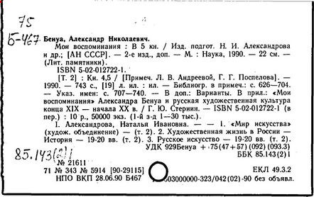 Мои воспоминания : в 5 кн./ А. Н. Бенуа; Изд.