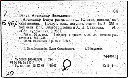 Литература: Эрнст С. А. Бенуа. П.,1921; Эткинд М. А. Н. Бенуа. Л.; М., 1965.