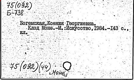 Литература: Кулаков В.А. Клод Моне [Альбом]. М., 1989 Тайландье И. Клод Моне [Альбом]. М., 1995