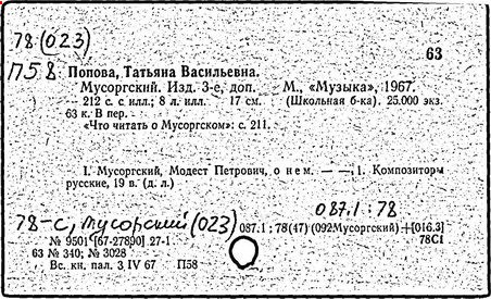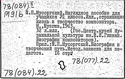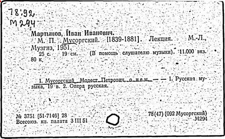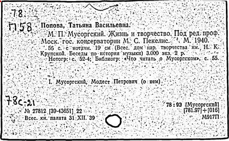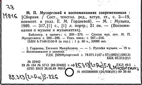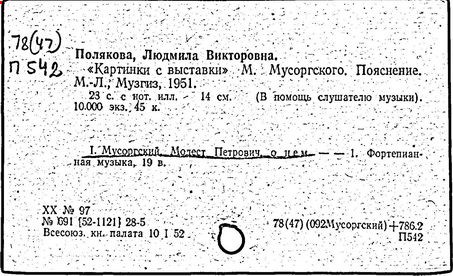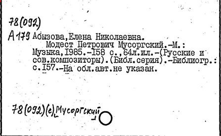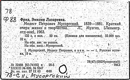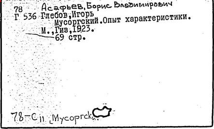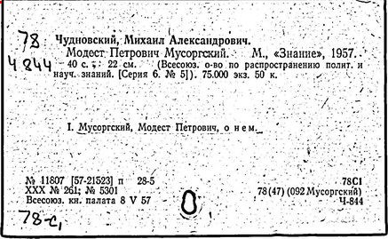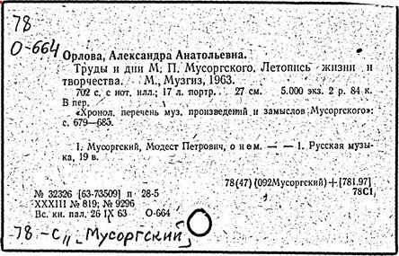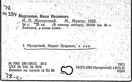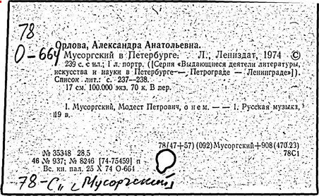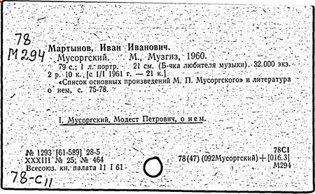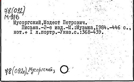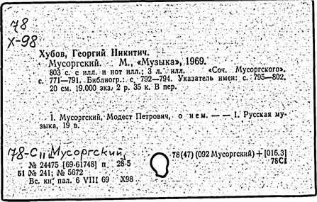 Литература: Хубов Г. Мусоргский. М., 1969; Шлифштейн С. Мусоргский. Художник. Время. Судьба. М., 1975; Рахманова М. Мусоргский и его время. – Советская музыка, 1980, №№ 9–10; М. П. Мусоргский в воспоминаниях современников. М., 1989.