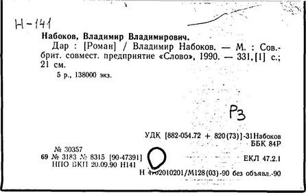 художественного произведения (роман В.Набокова "Дар"/"The gift")