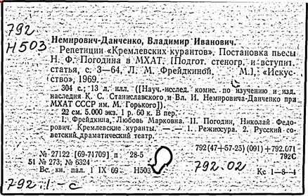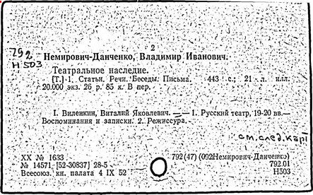 советский режиссёр, театральный деятель и педагог, писатель, драматург, народный артист СССР (1936 г.). Основатель (совместно с К. С. Станиславским) Московского Художественного театра (Московский Художественный академический театр им. М. Горького). Родился в Озургеты (ныне Махарадзе, Грузинская ССР). В юности участвовал в любительских спектаклях. В 1876-1979 гг. учился на физико-математическом факультете Московского университета. В 70-х гг. начал выступать в качестве театрального критика. Прозаические произведения Немировича-Данченко отмечены влиянием А. П. Чехова: повести, посвященные деревне, - "Губернаторская ревизия" (1896 г.), "Сны" (1898 г.), жизни актёров - "Драма за сценой" (1896 г.), нравам прессы - "На литературных хлебах" (1891 г.) и др. Его пьесы "Новое дело" (1890 г.), "Золото" (1895 г.), "Цена жизни" (1896 г.) и др. ставились в Малом и Александрийском театрах и в провинции. Глубокое знание современного ему театрального искусства привело Немировича-Данченко к мысли о необходимости его коренной реформы. Заинтересовавшись режиссёрской деятельностью К. С. Станиславского в обществе искусства и литературы, Немирович-Данченко предложил ему объединить усилия для утверждения новаторской программы театрального творчества. Результатом заключённого ими союза явилось создание в 1898 г. Художественно-общедоступного театра (первоначальное название МХАТа), в труппу которого вошли некоторые ученики Немировича-Данченко (в 1891-1901 гг. он руководил драматическим отделом Музыкально-драматического училища Московского филармонического общества) и участники общества искусства и литературы. Утверждение реалистической программы Художественного театра, связанной с принципами искусства "переживания", с постановкой передовой современной драмы, осуществлялось театром под совместным руководством Немировича-Данченко и Станиславского, причём Немировичу-Данченко принадлежало определяющее положение в области репертуара. Вместе со Станиславским он поставил все основные пьесы А. П. Чехова - "Чайка" (1898 г.), "Дядя Ваня" (1899 г.), "Три сестры" (1901 г.), "Вишнёвый сад" (1904 г.), самостоятельно пьесу "Иванов" (1904 г.). Немирович-Данченко способствовал привлечению драматургии М. Горького, вместе со Станиславским поставил "На дне" (1902 г.). Он осуществил постановки пьес Г. Гаунтмана ("Одинокие", 1899 г.) и Г. Ибсена ("Когда мы, мёртвые, пробуждаемся", 1900 г.; "Столпы общества", 1903 г.: "Бранд", 1906 г.: "Росмерсхольм", 1908 г.). В 1903 г. Немирович-Данченко поставил трагедию "Юлий Цезарь" Шекспира, широко используя средства современного психологического театра. Новаторские принципы режиссуры Немировича-Данченко - мастерство психологического анализа, умение передать неповторимые черты воссоздаваемой общественной среды и особенности стиля автора - убедительно проявились и в постановках русской классики ("На всякого мудреца довольно простоты" Островского, 1910 г.; "Смерть Пазухина" Салтыкова-Щедрина, 1914 г.). В его инсценировке "Братьев Карамазовых" Достоевского отчётливо прозвучали социально-критические мотивы романа. В то же время противоречивый характер инсценировки "Бесов" Достоевского ("Николай Ставрогин", 1913 г.) вызвал решительное неприятие спектакля М. Горьким. Стремясь к преодолению кризисных тенденций, связанных с опасностью утраты театром контакта с передовой общественностью, Немирович-Данченко не всегда находил в пос