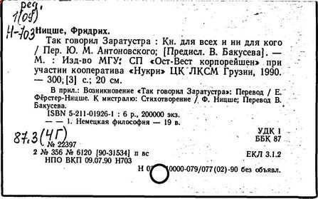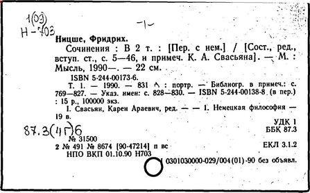 Ф. Ницше. -М.: REFL-book, 1994. -406,[1] с. -
