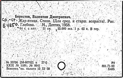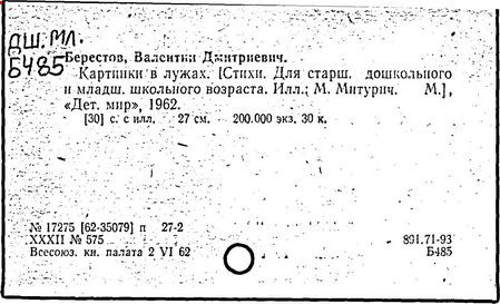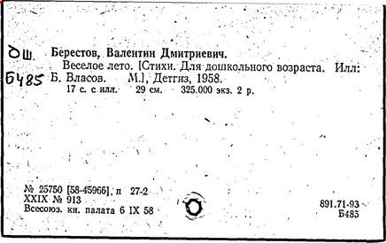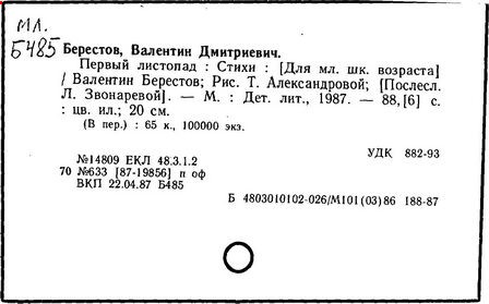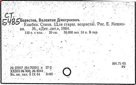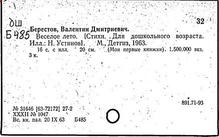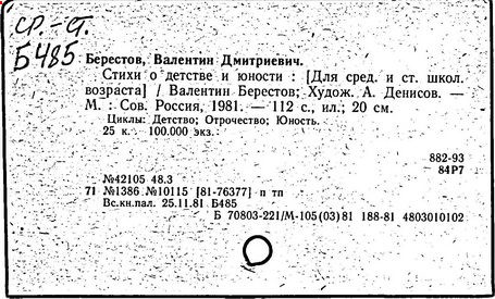 Первые произведения Берестов опубликовал в журнале «Смена» в 1946 г. Первый сборник его стихов «Отплытие» вышел в 1957 г. и получил признание читателей, поэтов и критиков. В том же году выходит первая книга для детей «Про машину». Затем последовали сборники стихов: «Веселое лето», «Как найти дорожку», «Улыбка», «Жаворонок», «Первый листопад», «Определение счастья», «Пятая нога» и многие другие. «Берестов, – писал поэт Коржавин, – это, прежде всего, талантливый, умный и, если можно так выразиться, веселый лирический поэт». Анна Ахматова о коротких юмористических стихах Валентина Дмитриевича Берестова говорила ему: «Отнеситесь к этому как можно серьезнее. Так никто не умеет».