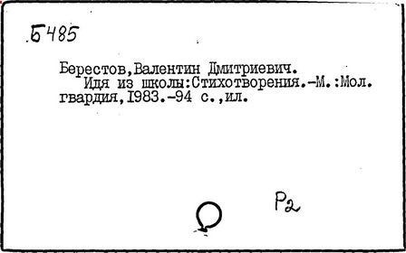 В 1944 г. Валентин Берестов с рекомендательными письмами от А. Ахматовой приезжает в Москву. Оканчивает десятилетку в Интернате для одаренных детей в Горках Ленинских (Московская область). А в выходные навещает семью в Калуге.