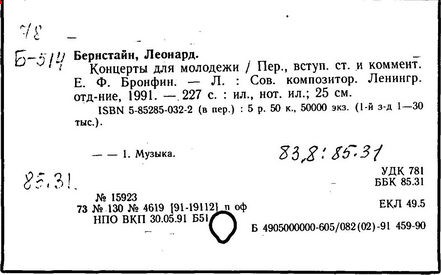Литература: Бернстайн Л. Музыка - всем. М., 1978