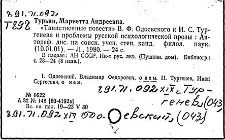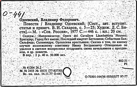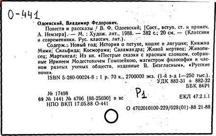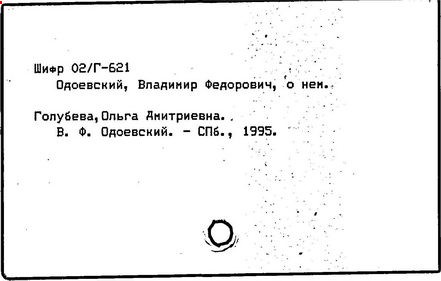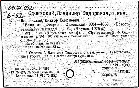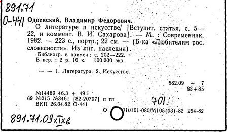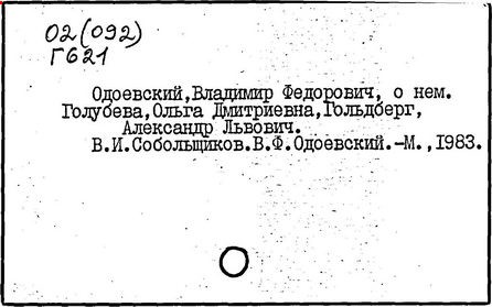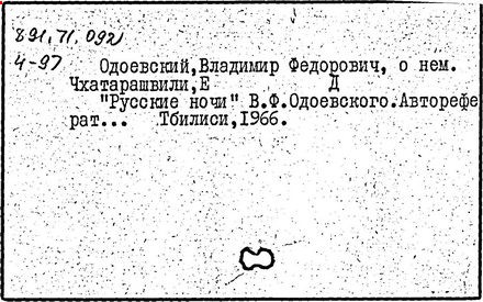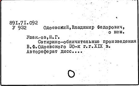 Литература: Сакулин П. Н. Из истории русского идеализма: Князь В. Ф. Одоевский. Мыслитель. Писатель. М., 1913; Одоевский В. Ф. Сочинения, тт. 1-2. М., 1981.
