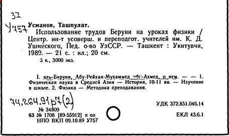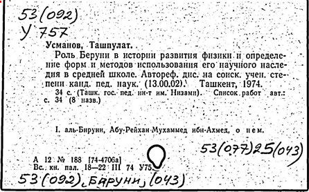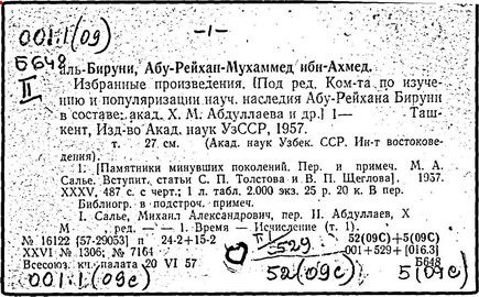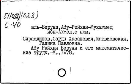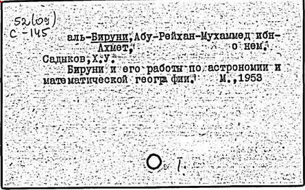 Литература: Бируни - великий узбекский учёный средневековья: [сб. ст.]. Ташкент, 1950; Бируни: сб. ст. М.; Л., 1950; Садыков Х. У. Бируни и его работы по астрономии и математической географии. М., 1953.