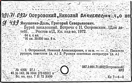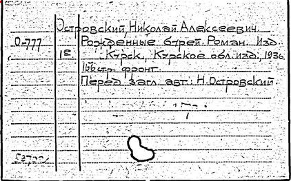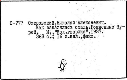 В 1927 г. тяжелая болезнь приковала Островского к постели, через год он потерял зрение. Мужественно боролся с болезнями, занимался самообразованием, учился в заочном коммунистическом университете, готовя себя к литературной работе. Слепой, неподвижный, испытывающий страшные боли, он создает книгу "Как закалялась сталь" (1932 – 1934 гг.), имевшую большой успех. Он встречался и переписывался с читателями, выступал по радио, опубликовал ряд статей. В 1934 – 1936 гг. Островский работал над новым романом - "Рожденные бурей", первая книга которого вышла в свет в день похорон писателя.