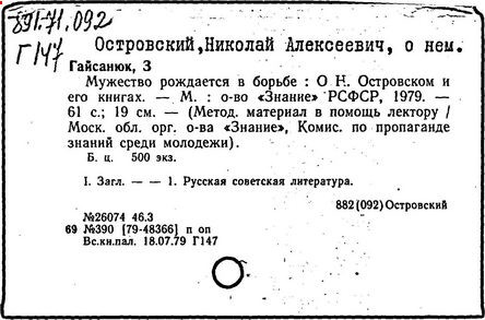 "Преодоление" им. Н.А.Островского. -М.: Гос. музей-гуманитар.