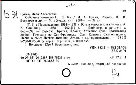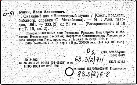 Некоторые произведения («Окаянные дни» и др.) в СССР напечатаны только с началом перестройки.