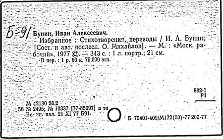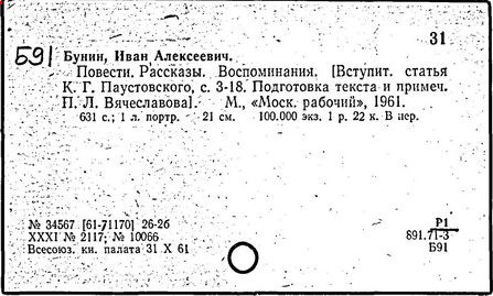 В 1929—1954 гг. произведения Бунина в СССР не издавались. С 1955 года — наиболее издаваемый в СССР писатель первой волны русской эмиграции (несколько собраний сочинений, множество однотомников).