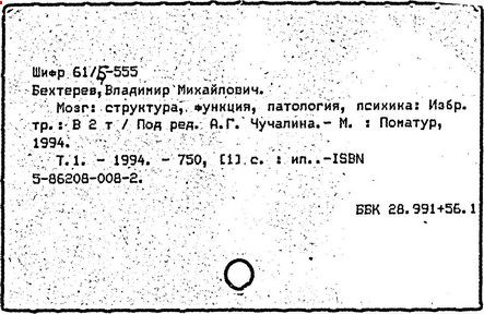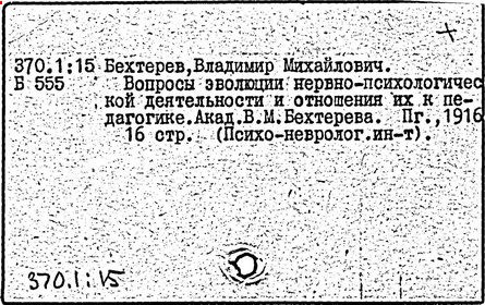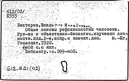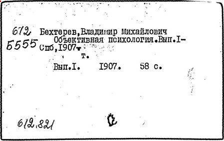 Научные исследования Бехтерева охватывают чрезвычайно широкий круг вопросов. Бехтерев - крупнейший представитель науки о структуре и функциях мозга, клиники невропатологии и психиатрии. В трудах Бехтерева - "Проводящие пути спинного и головного мозга" (1893), "Основы учения о функциях мозга" (в. 1-7, 1903-1907) обобщены результаты его исследований по морфологии и физиологии нервной системы. Клинические работы Бехтерева, посвящённые вопросам невропатологии и психиатрии, имеют важное значение для диагностики нервных и психических болезней и методов их лечения. Психологические исследования Бехтерева тесно связаны с его психиатрическими и патопсихологическими работами. В лаборатории Бехтерева при психиатрической клинике Военно-медицинской академии были выполнены многочисленные экспериментально-психологические исследования, сыгравшие большую роль в развитии экспериментальной психологии в России, в становлении её как самостоятельной науки. Бехтерев выступил против теории и методов господствовавшей субъективной психологии и стремился построить естественнонаучное психологическое учение, основанное на объективных методах исследования. Свою систему психологических воззрений Бехтерев называл объективной психологией (с 1904), а затем - психорефлексологией (с 1910) и рефлексологией (с 1917).