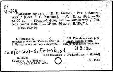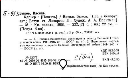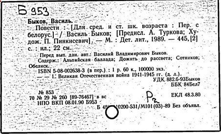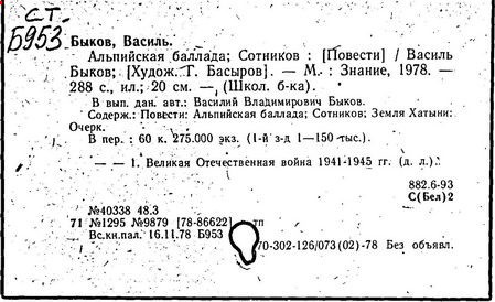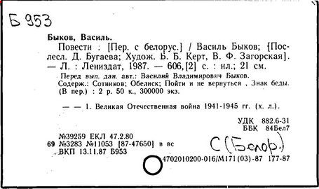 Литература: Энцыклапедыя літаратуры і мастацтва Беларусі. – Мн., 1984. – Т.1. – С. 522–524; Беларускія пісьменнікі: Біябібліяграфічны слоўнік. – Мн., 1992. – Т.1. – С.426–444; Энцыклапедыя гісторыі Беларусі. – Мн., 1994. – Т.2. – С.142; Беларуская Энцыклапедыя: У 18 т. – Мн., 1996. – Т.3. – С.371; Буран В. А. Васіль Быкаў: Нарыс творчасці. – Мн., 1976; Лазарев Л. И. Василь Быков: Очерк творчества. – М., 1979; Дедков И. А. Василь Быков: Очерк творчества. – М., 1980; Zaprudnik Jan. Historical Dictionary of Belarus. – 1998. P. 70–71. (USA.); фильм «Восхождение» В. Дашука (1985).