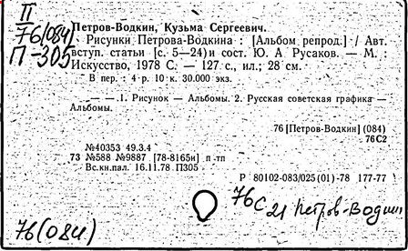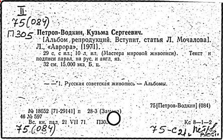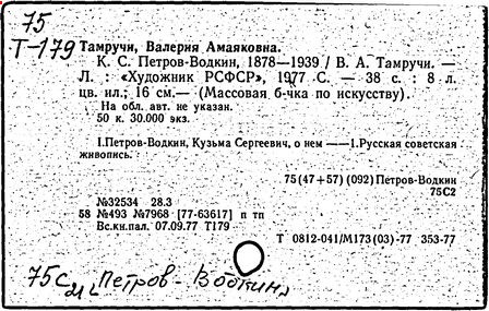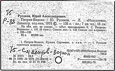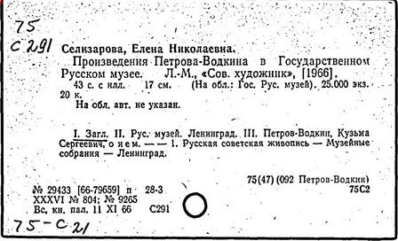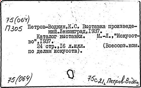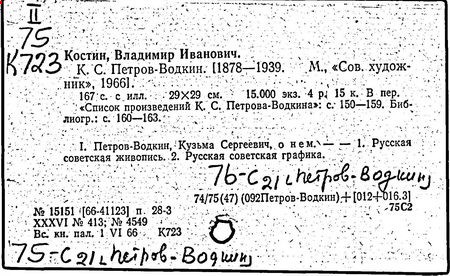 Литература: Костин В. И. К. С. Петров-Водкин. [М., 1966]; К. С. Петров-Водкин. 1878-1939. Каталог выставки. М.; Л., 1966; К. С. Петров-Водкин. [Альбом. Вступ. ст. Л. Мочалова]. Л., [1971].