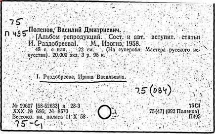 Литература: Сахарова Е.В., В.Д. Поленов. Письма. Дневники. Воспоминания, М.-Л., 1950; Юрова Т.В. Поленов, М., 1961; В.Д. Поленов, Е.Д. Поленова. Хроника семьи художника, М., 1964.