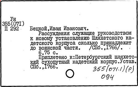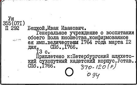 1.Бецкой И. И. Прибавление к изданию трех частей Генерального