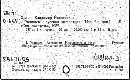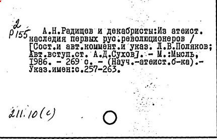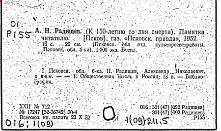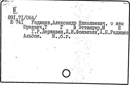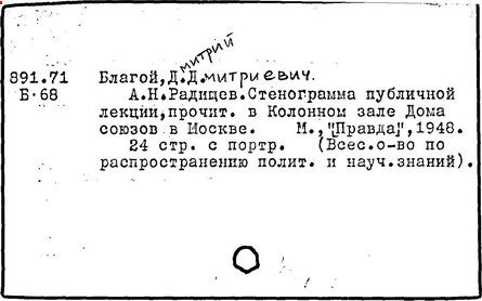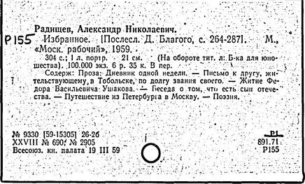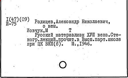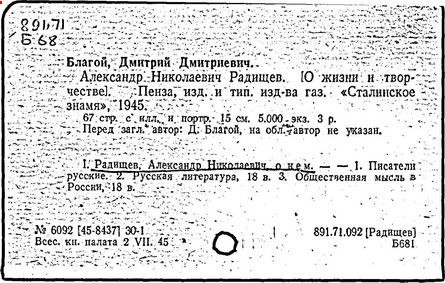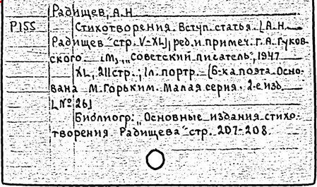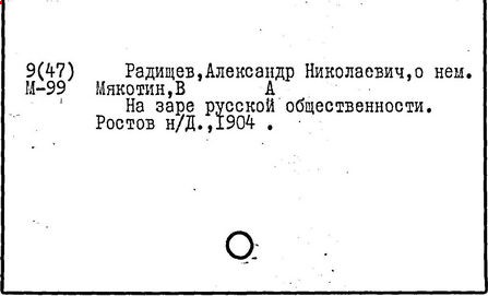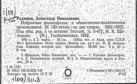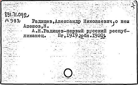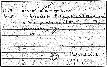 Литература: Лапшин И. И. Философские воззрения А. Н. Радищева. Пг., 1922; Радищев А. Н. Сочинения, тт. 1-2. М. - Л., 1941; Радищев А. Н. Избранные философские и общественно-политические произведения. М., 1952.