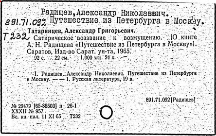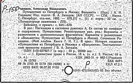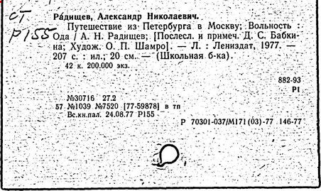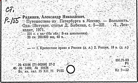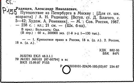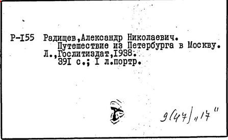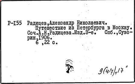 А. Н. Радищев. Путешествие из Петербурга в Москву