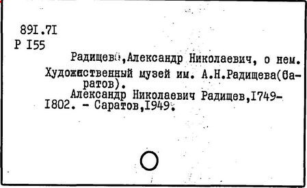писатель, философ. Родился в Москве в дворянской семье. Учился в Германии, в Лейпцигском университете (1766-1770 гг.). В эти годы началось увлечение Радищева философией. Он изучал труды представителей европейского Просвещения, рационалистической и эмпирической философии. После возвращения в Россию поступил на службу в Сенат, а позднее - в Коммерц-коллегию. Радищев активно участвовал в литературной жизни: опубликовал перевод книги Г. Мабли «Размышления о греческой истории» (1773 г.), собственные литературные произведения «Слово о Ломоносове» (1780 г.), «Письма к другу, жительствующему в Тобольске» (1782 г.), оду «Вольность» (1783 г.) и др. Все изменилось после публикации в 1790 г. «Путешествия из Петербурга в Москву». Радищев был арестован и объявлен государственным преступником за свои "богомерзкие сочинения". Суд приговорил его к смертной казни, замененной ссылкой "в Сибирь, в Илимский острог на десятилетнее безысходное пребывание". В ссылке Радищев занимался научными изысканиями, писал «Сокращенное повествование о приобретении Сибири», «Письмо о Китайском торге», философский трактат 2О человеке, о его смертности и бессмертии» (1790-1792 гг.). В 1796 г. император Павел I разрешил Радищеву вернуться из Сибири и поселиться в своем калужском имении. В 1801 г. император Александр I разрешил ему переезд в столицу. В последний год жизни Радищев готовил ряд проектов ("О законоположении", "Проект гражданского уложения" и др.), в которых обосновывал необходимость ликвидации крепостных отношений и гражданских реформ. Философские воззрения Радищева несут не себе следы влияния различных направлений европейской мысли его времени. Он руководствовался принципом реальности и материальности (телесности) мира, утверждая, что "бытие вещей независимо от силы познания о них и существует по себе". Согласно его гносеологическим воззрениям, "основанием всего естественного познания является опыт". При этом чувственный опыт, будучи главным источником познания, находится в единстве с "опытом разумным". В мире, в котором нет ничего "опричь телесности", свое место занимает и человек, существо столь же телесное, как и вся природа. У человека особая роль, он, по Радищеву, представляет собой высшее проявление телесности, но в то же время неразрывно связан с животным и растительным миром. "Мы не унижаем человека, - утверждал Радищев, - находя сходственности в его сложении с другими тварями, показуя, что он в существенности следует одинаковым с ним законам. И как иначе-то быть может? Не веществен ли он?" Принципиальным отличием человека от прочих живых существ является наличие у него разума, благодаря которому тот "имеет силу о вещах сведому". Но еще более важное отличие заключается в способности человека к моральным действиям и оценкам. "Человек - единственное существо на земле, ведающее худое, злое", "особое свойство человека - беспредельная возможность как совершенствоваться, так и развращаться". Как моралист Радищев не принимал моральную концепцию "разумного эгоизма", считая, что отнюдь не "себялюбие" является источником нравственного чувства: "человек есть существо сочувствующее". Будучи сторонником идеи "естественного права" и всегда отстаивая представления о естественной природе человека ("в человеке никогда не иссякают права природы"), Радищев в то же время не разделял намеченное Рус