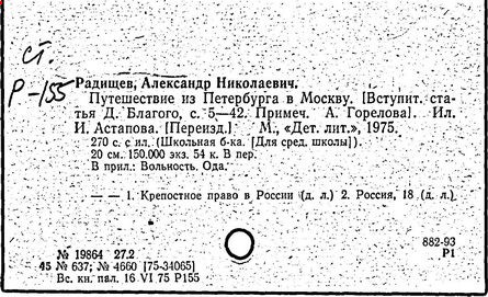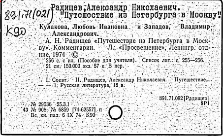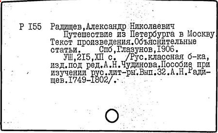 "Путешествие из Петербурга в Москву" [Текст]: [хрестоматия